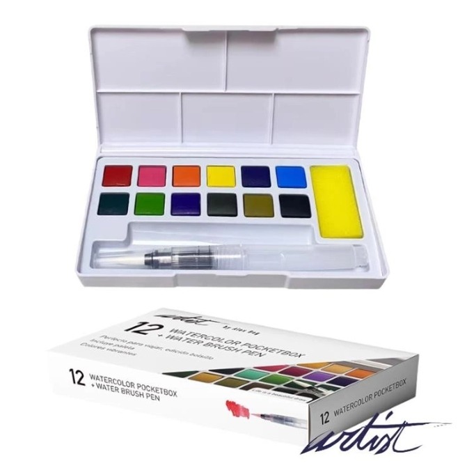 Caja 12 godets acuarela Pocketbox Artist Hartem